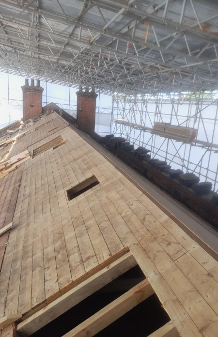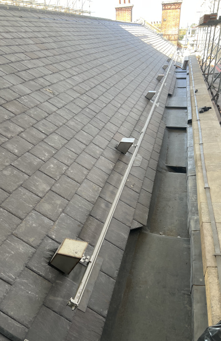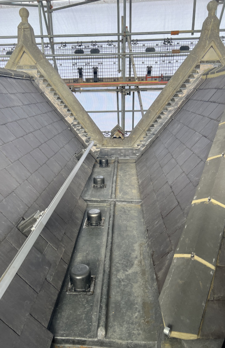 The works involved the renewal of the roof coverings, sensitive carpentry repairs to the existing roof structure, installation of a new fall arrest system to the roof, the removal of old plant and ventilation equipment from the roof, asbestos removal, extensive internal refurbishment including new WC’s, office fit-out work (decorations and carpet tiles), services upgrades including fire alarm package, cast guttering and downpipe replacements, and some window replacement works.